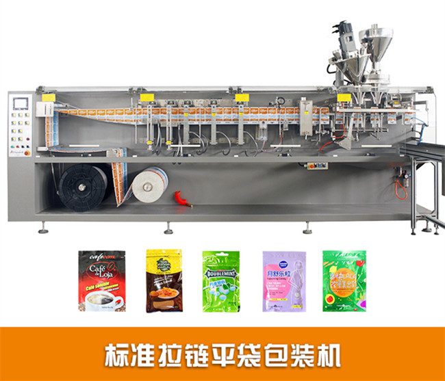拉鏈平袋包裝機系列專為小袋、中袋包裝設(shè)計,擁有雙工位下料,可以定制掛孔、拉鏈等功能,大量應(yīng)用于顆粒、粉末等物料罐裝包裝類型。