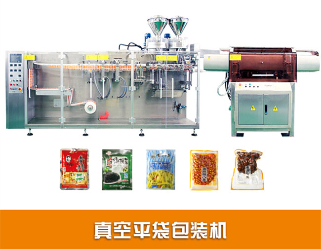 VB系列以水平式包裝機為基礎(chǔ),結(jié)合雙腔室箱式真空設(shè)備,實現(xiàn)產(chǎn)品的全自動真空袋包裝,大量應(yīng)用于榨菜、蘿卜干、醬腌菜、顆粒、粉末、液體等包裝類型。